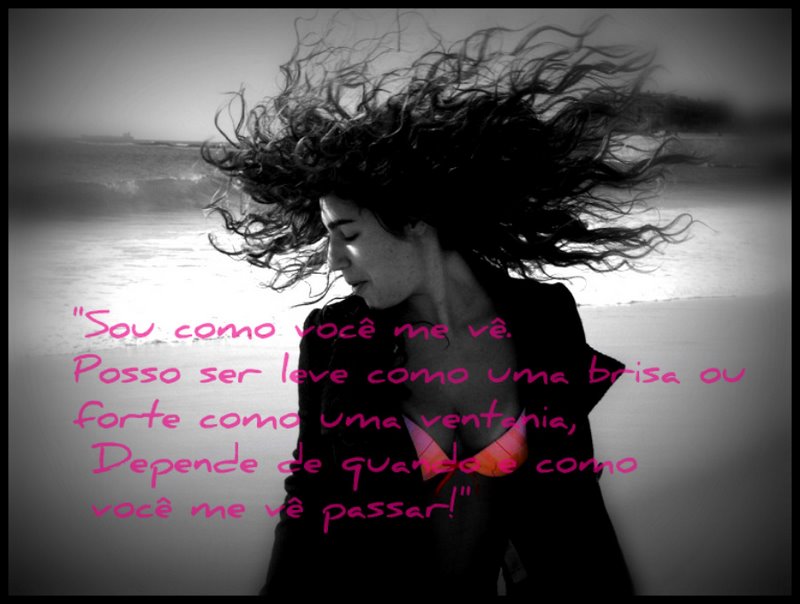 “Não tenho nada a ver com o que é dos outros, seja roupa, gostos, opiniões;Não me escalo para histórias que não são minhas, não me envolvo com o que não me envolve, não tomo emprestado nem me empresto, se é caso sério eu me dôo, se é bobagem eu me abstenho.Tenho vida própria e suficiente pra lidar, sobra pouco de mim para intromissões no que me é mais ainda estranho do que eu mesma... Nada tenho a ver com não gostar de mim. Me sinto impura, me gosto com pecados, e há muito me perdoei...Meu mundo se resume a palavras que me perfuram, a canções que me comovem, a paixões que já nem me lembro, as perguntas sem respostas, às respostas que não me servem, à constante perseguição do que ainda não sei. Meu mundo se resume ao encontro do que é terra e fogo dentro de mim, onde não me enxergo, mas me sinto..." (Martha Medeiros)
